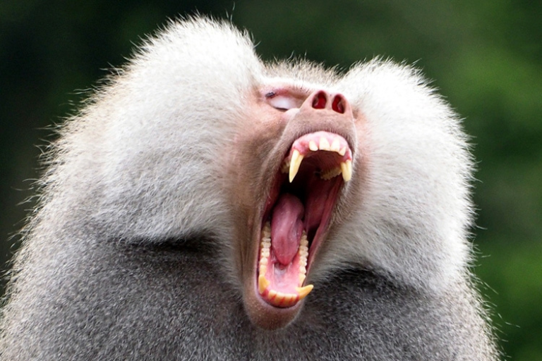 Baboons are equipped with powerful incisors and canines, used for both feeding and displaying dominance. Their sharp teeth serve as effective tools in foraging and defending against predators.