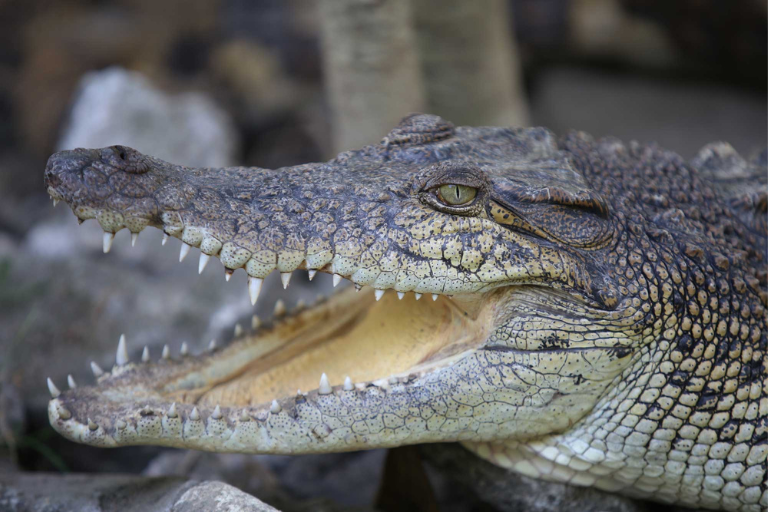 With formidable jaw strength and teeth that can reach lengths of up to 4 inches, the saltwater crocodile is an ancient reptile that has mastered the art of ambushing its prey. Its teeth are built for a quick and lethal strike.