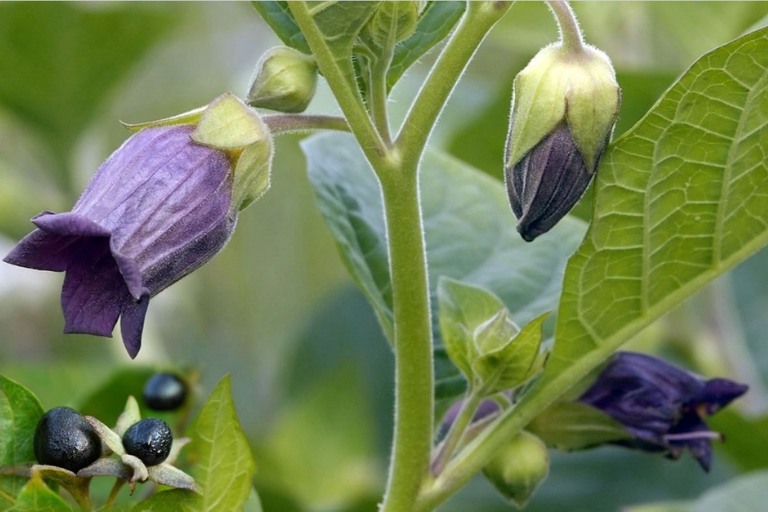 Atropa belladonna, commonly known as deadly nightshade, is among the most poisonous plants in the Western Hemisphere. Every part of the plant is toxic, berries, leaves, roots and ingestion of just a few berries can be fatal to children. Its name, “belladonna,” meaning “beautiful lady” in Italian, refers to its historical use: during the Renaissance, women would use a belladonna extract to dilate their pupils, giving them a seductive, glassy-eyed look. This cosmetic use came at a terrible cost, as prolonged exposure caused blindness and systemic toxicity. Meanwhile, in darker chapters of history, belladonna’s extracts were used for assassinations and as part of so-called “witches’ flying ointments.”