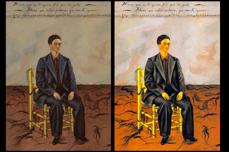 Kahlo’s 1939 double self-portrait reveals her duality and emotional pain following her divorce. One Frida, dressed in traditional Mexican attire, holds a small portrait of her ex-husband while the other, in European clothing, appears heartbroken and exposed. The visible veins and bleeding heart create a grotesque yet intimate portrayal of personal trauma that remains hauntingly relatable.