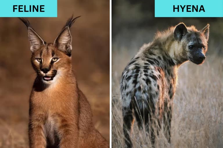 Despite their different hunting styles, felines (cats) and hyenas share a common ancestor. Both belong to the Carnivora order and have adapted to their respective ecological niches over millions of years.