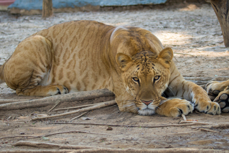 The majestic blend of a lion and a tiger, ligers are colossal feline hybrids known for their impressive size and striking coat patterns. These regal creatures embody the epitome of the wildcat world.