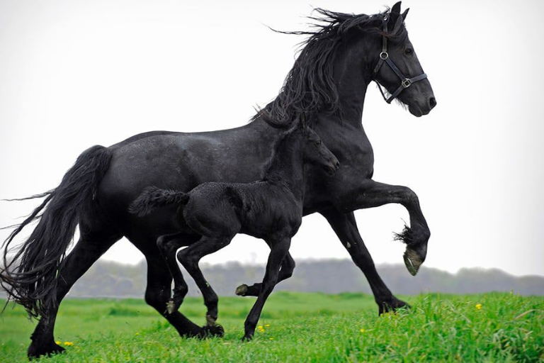 With its flowing mane and tail, the Friesian horse is often described as the “black pearl” of the equine world. Its striking black coat and graceful movements make it a sight to behold.