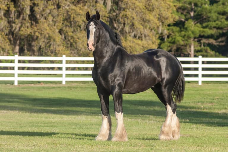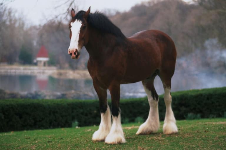 Clydesdales are known for their impressive size and distinctive feathered hooves. Their dignified appearance and gentle nature have made them popular as draft horses and in parades.