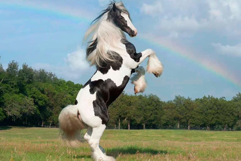 With its luxurious feathered feet and a colorful, piebald coat, the Gypsy Vanner is a dream horse for those who appreciate a touch of whimsy. Its friendly disposition matches its charming appearance.