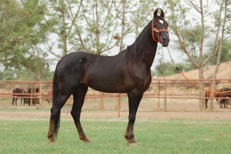 Originating in India, Marwari horses are known for their distinctive, inward-curving ears. Their regal presence and unique appearance make them stand out.