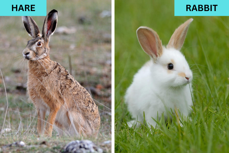 Hares and rabbits are both lagomorphs, but hares are larger and have longer ears and legs. Rabbits are smaller and have shorter ears and legs.