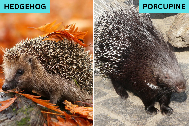 Hedgehogs and porcupines are small, spiky mammals that can be easily confused. Hedgehogs have short, soft spines and are smaller, while porcupines are larger and have longer, sharper quills.