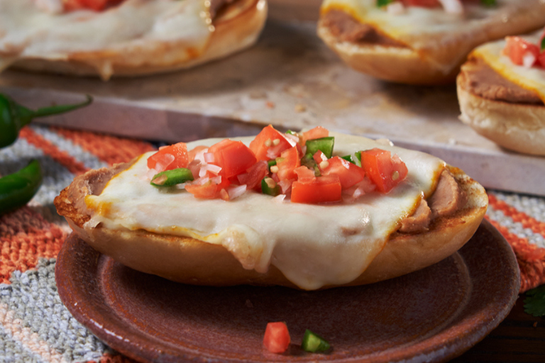 These are open-faced bolillo rolls topped with refried beans and melted cheese, often sprinkled with pico de gallo. Perfect for breakfast or a snack!