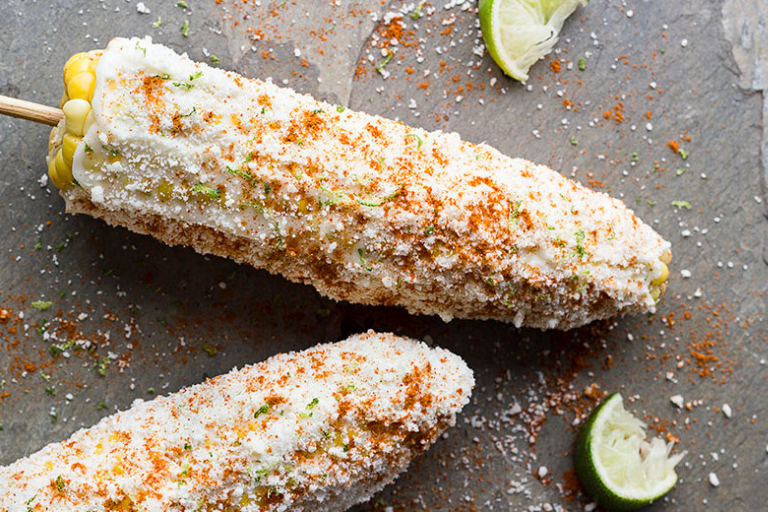 Grilled corn on the cob, typically slathered with mayonnaise, sour cream, cheese, and chili powder. It’s a Mexican street food classic and utterly addictive.