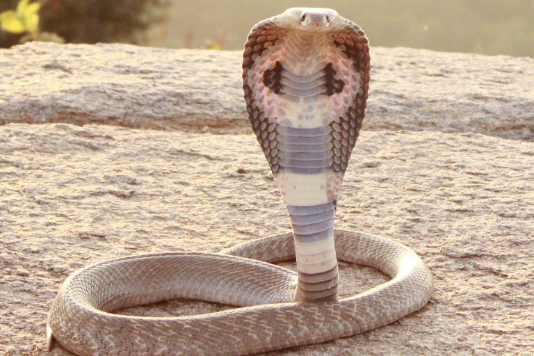 Known for their distinctive hood, these snakes have a powerful hemotoxic venom that can cause tissue destruction and internal bleeding.