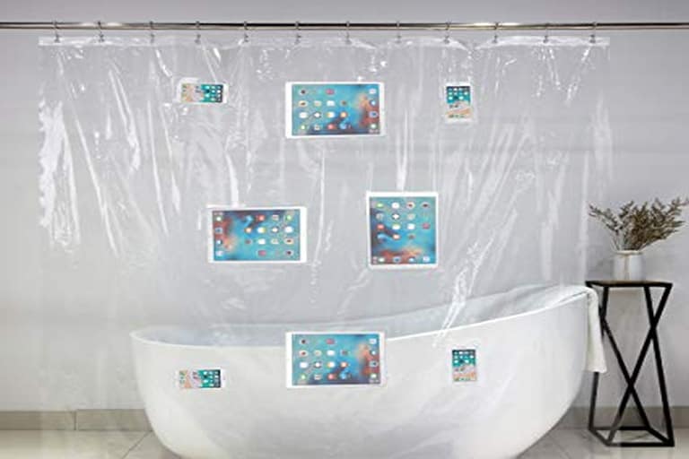 1. Shower Curtain Liner With Phone Pockets