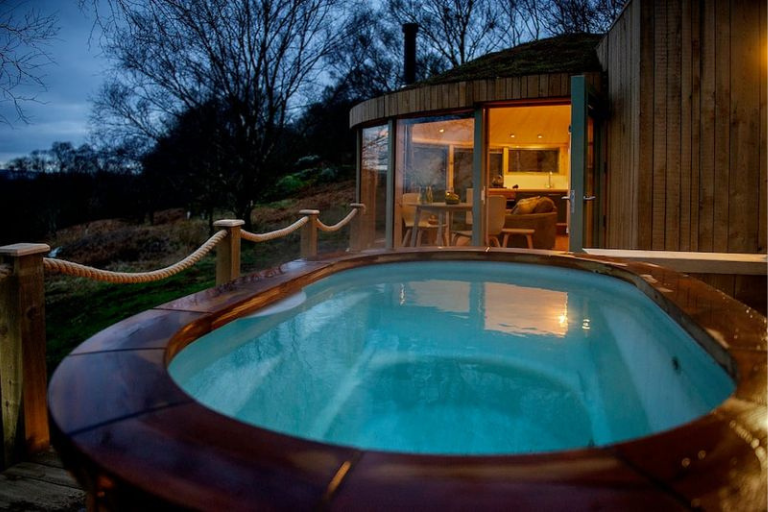 Escape to the rugged beauty of the Scottish Highlands with a stay at a secluded Airbnb. Surrounded by nature, including a private loch, the property’s pool provides a tranquil space to unwind after a day of hiking or exploring the historic landmarks.