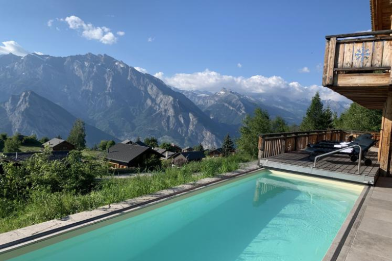 Escape to the Swiss Alps and discover a secluded chalet with its own mountain-view pool. Whether you’re an avid skier or a nature enthusiast, this Airbnb provides a serene retreat, complete with the soothing sound of water against a backdrop of snow-capped peaks.