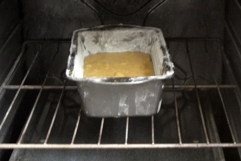 Pour and smooth the batter: Pour the batter into the greased loaf pan, spreading it evenly with the spatula. Give the pan a gentle tap on the counter to release any trapped air bubbles.