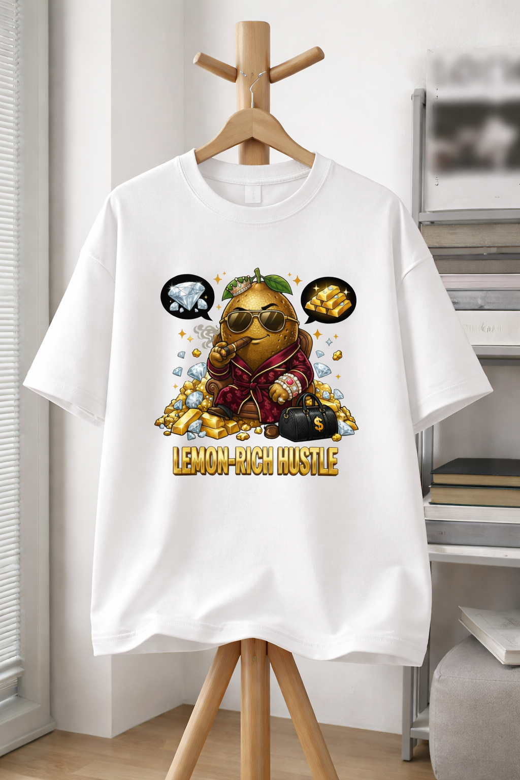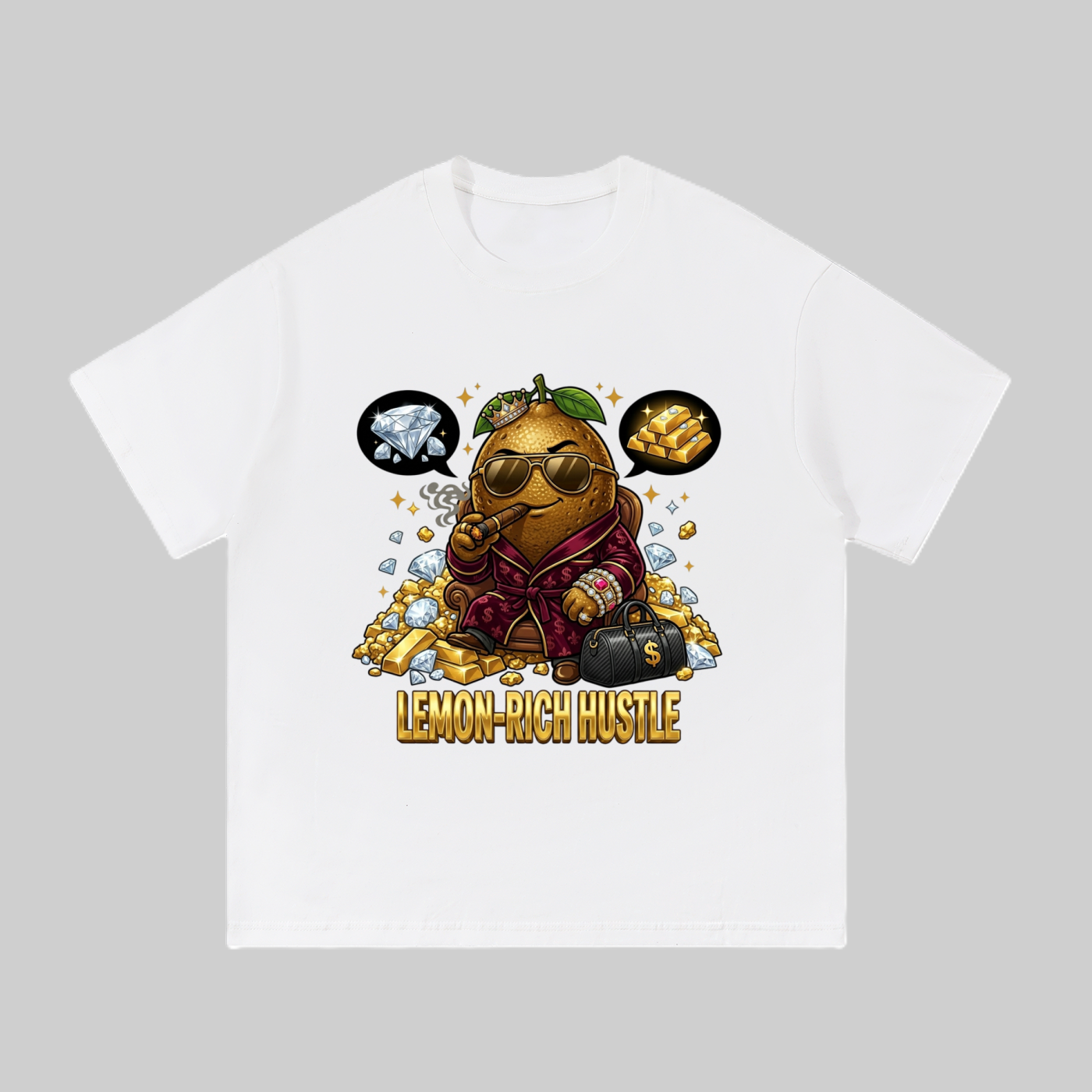 Level up your streetwear game with the Lemon-Rich Hustle t-shirt!