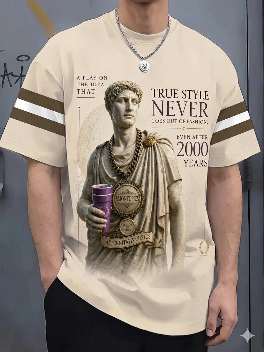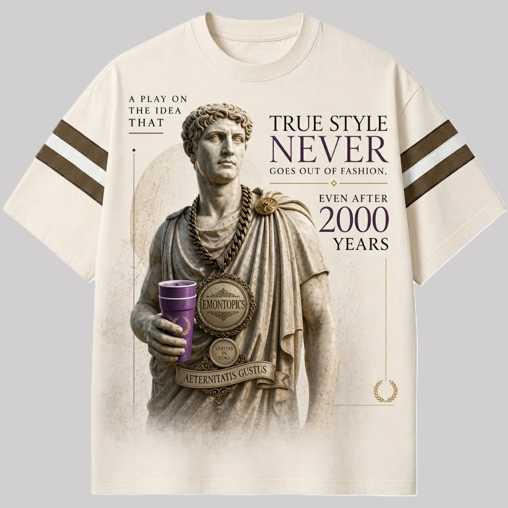 The Narrative: Featuring the bold declaration, “True Style Never Goes Out of Fashion, Even After 2000 Years,” this design is for the thinkers, the creators, and the trendsetters who look to the past to define the future.