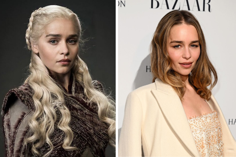 Emilia Clarke’s portrayal of the Mother of Dragons is legendary, but in reality, she lacks the platinum locks and regal attire. Clarke’s real-life look is more contemporary and showcases her playful personality.