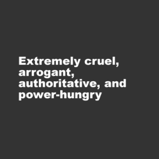 Extremely cruel, arrogant, authoritative, and power-hungry -