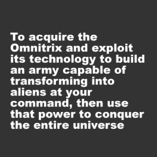To acquire the Omnitrix and exploit its technology to build an army capable of transforming into aliens at your command, then use that power to conquer the entire universe -