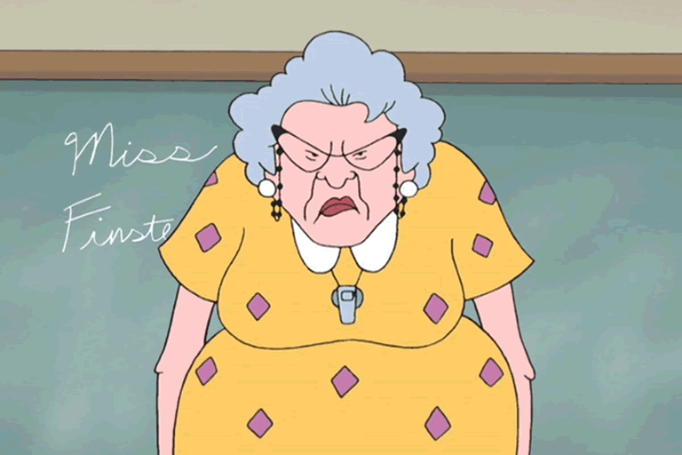 What type of job does Miss Finster do during recess, lunch and in the halls?