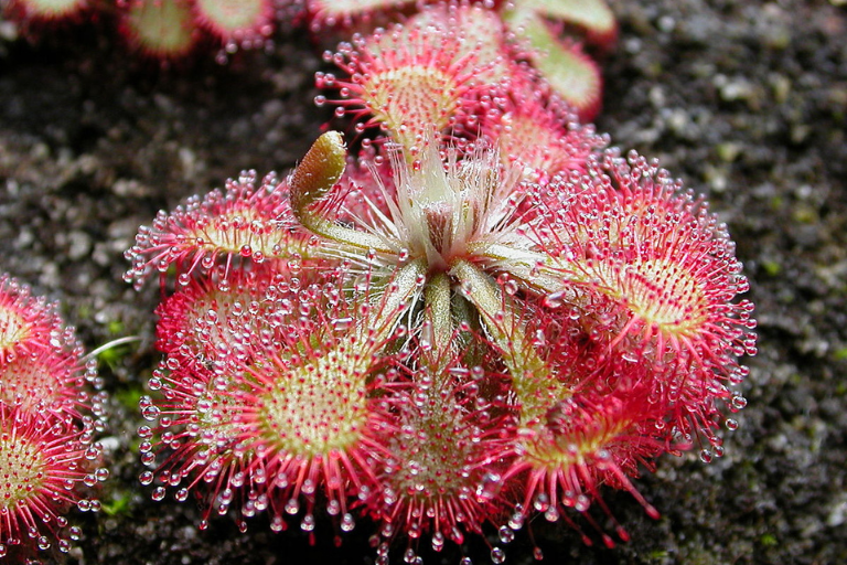 Tiny but deadly, the Sundew employs sticky, glandular tentacles to ensnare and digest insects. Found in nutrient-poor soils, these carnivorous plants have evolved a unique strategy to supplement their nutritional needs.