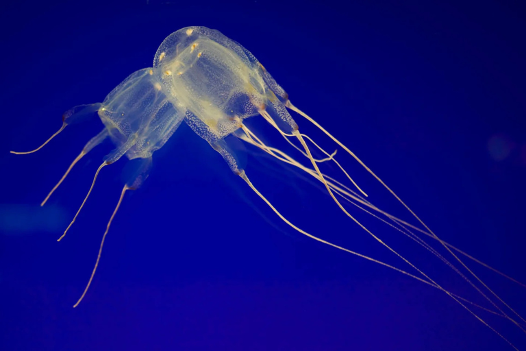 The box jellyfish is one of the most venomous creatures in the world. Found primarily in the waters of the Indo-Pacific region, its tentacles carry toxins that can cause heart failure and death within minutes. The pain from its sting is excruciating and can result in a lethal reaction if not treated swiftly.