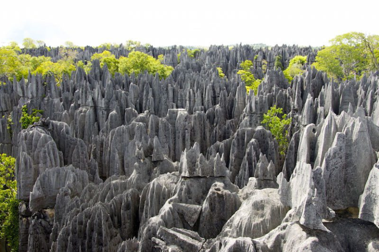 Translated as “where one cannot walk barefoot,” Tsingy de Bemaraha National Park features a unique labyrinth of razor-sharp limestone formations. These towering limestone needles create a surreal landscape, challenging both nature enthusiasts and geologists alike to navigate its intricate paths.
