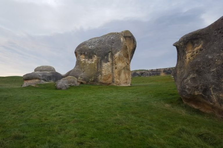 On New Zealand’s South Island, the Elephant Rocks are a collection of massive limestone boulders scattered across a rural landscape. The rounded, elephant-like forms are a product of natural weathering, turning the area into a whimsical sanctuary for these peculiar rock creatures.