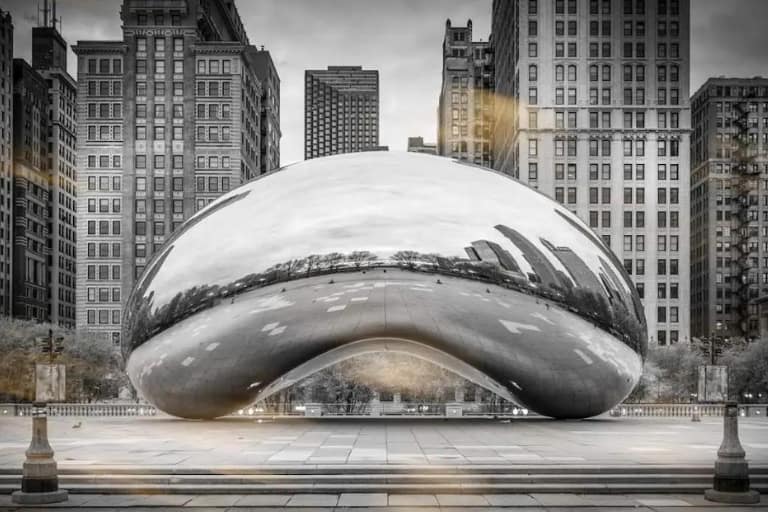 Start your Chicago journey with a visit to Millennium Park, where the Cloud Gate sculpture, affectionately known as “The Bean,” captivates visitors with its reflective, curved surface. Capture unique reflections of the city’s skyline in this iconic piece of public art.