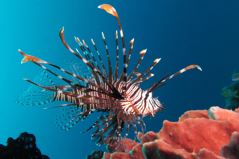 Similar to its cousin, the Red Lionfish boasts vibrant colors and venomous spines. Native to the Indo-Pacific, it has invaded other regions, posing a threat to local marine life and challenging ecosystems.
